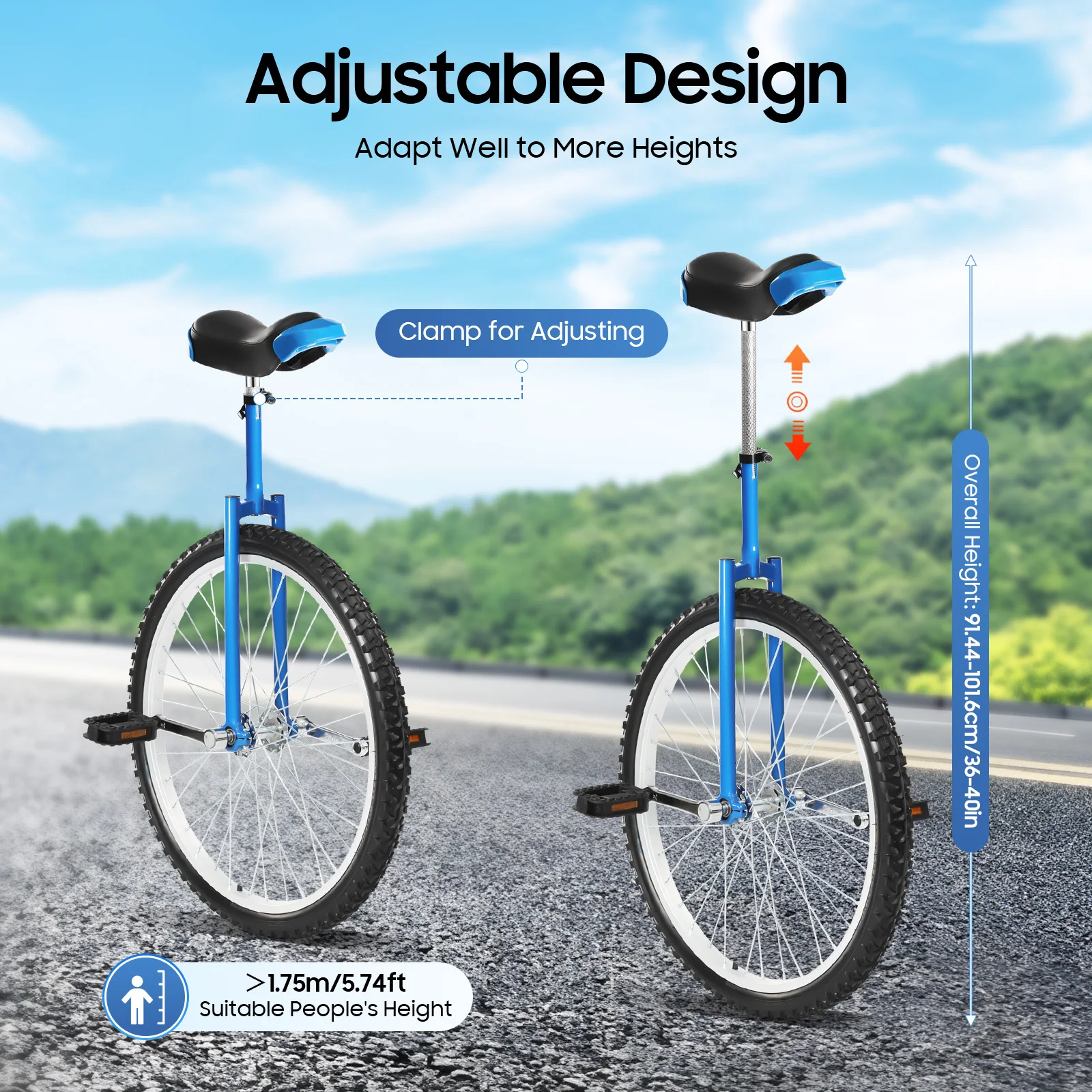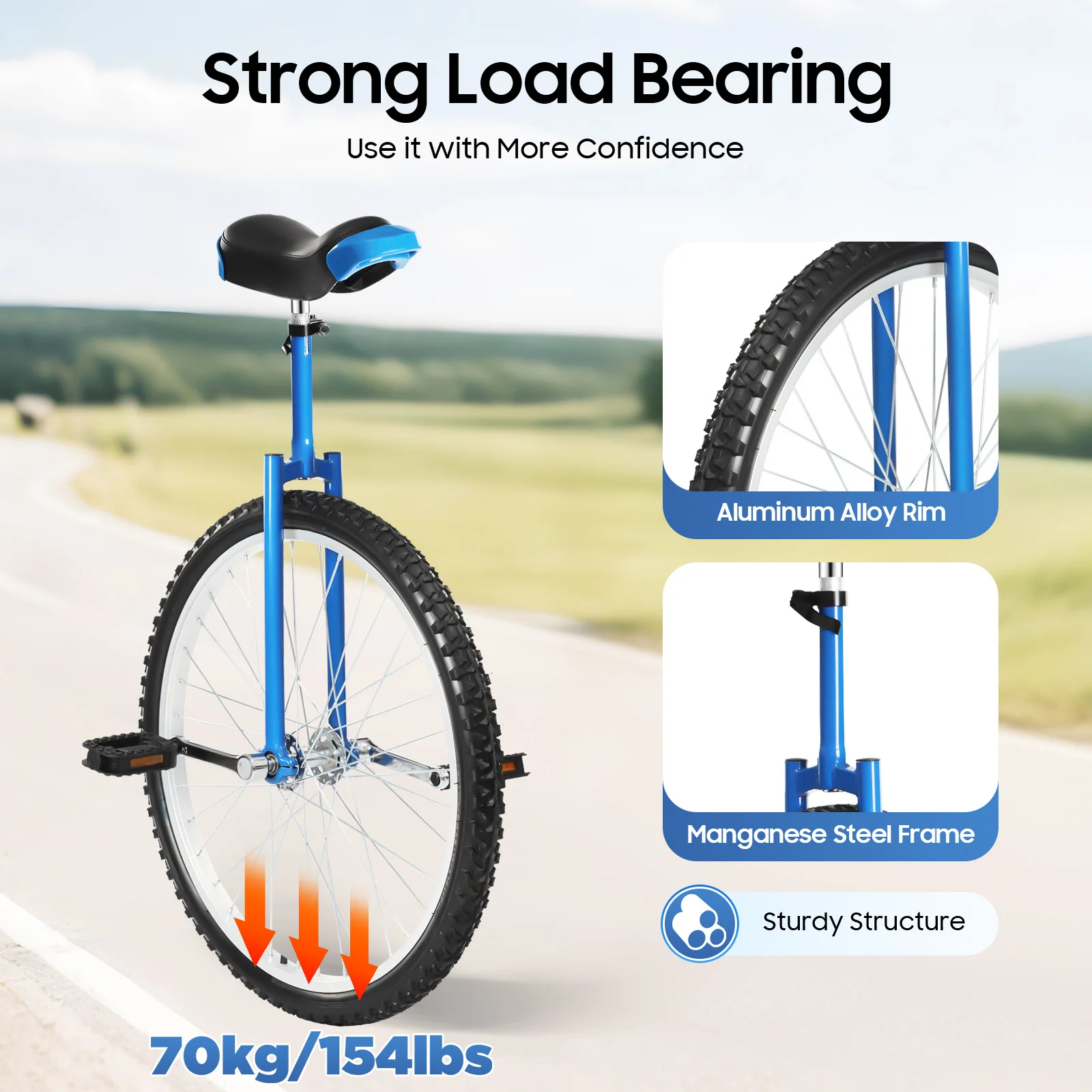 This 24-inch unicycle will provide you with a unique fitness experience, enhancing your physical fitness while improving your riding balance. The grips on the front and back of the seat and the lightweight body make it easy to carry, allowing you to maneuver through crowded city streets or on park trails, bringing you a different travel experience. It is not only a transportation tool but also a partner to show your own style and challenging spirit.