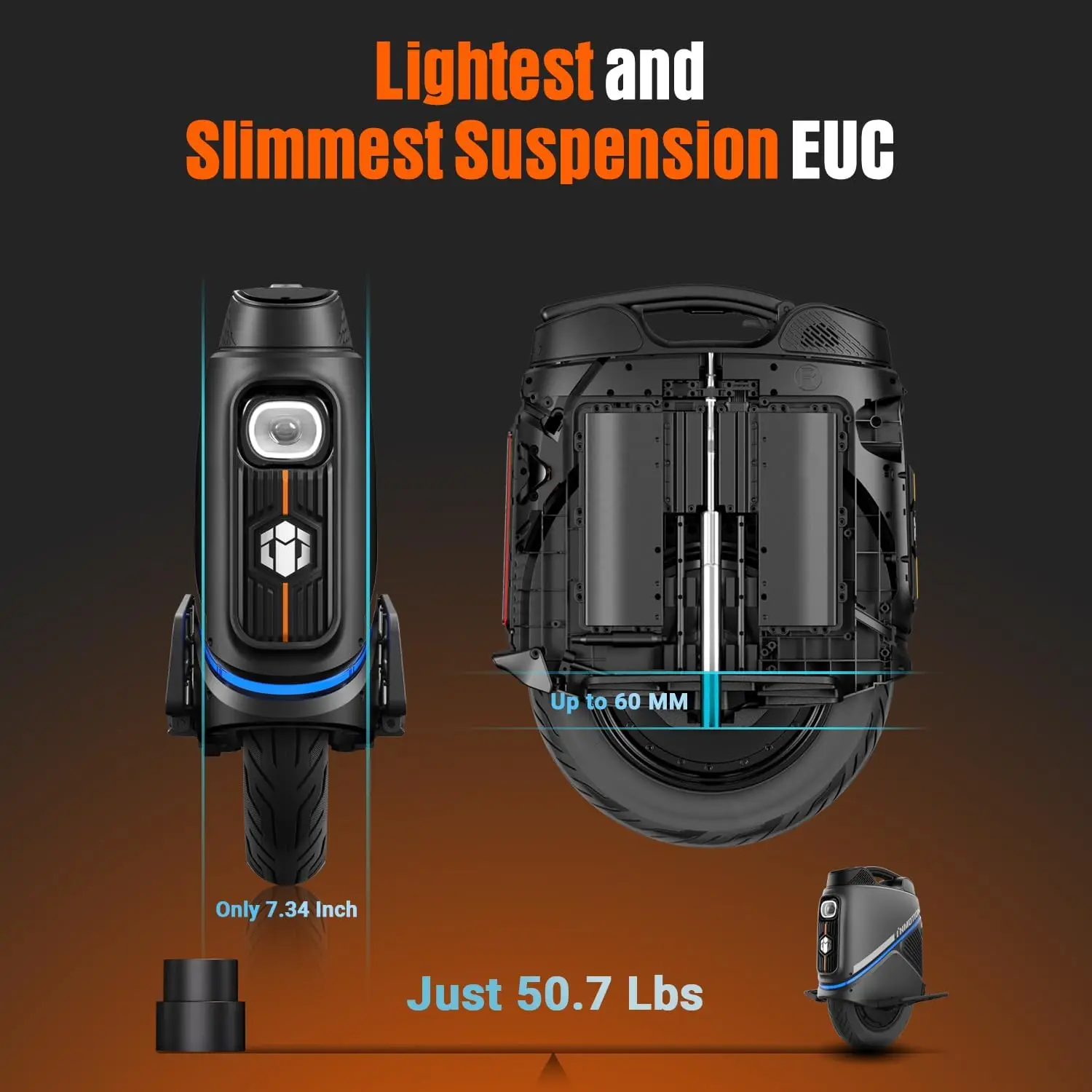 Newest INMOTION V9 Electric Unicycle 1000W Motor 84V 750Wh Battery 60mm Suspension With GPS Remote Locking LED Light EUC-Wheel