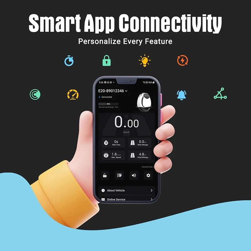 The E20 is designed to be simple yet stable, allowing you to master it in just 3 minutes. With our proprietary dynamic self-balancing algorithm, the vehicle maintains both front and rear balance,reducing the risk of tipping over. Enjoy a fun and worry-free ride with confidence.