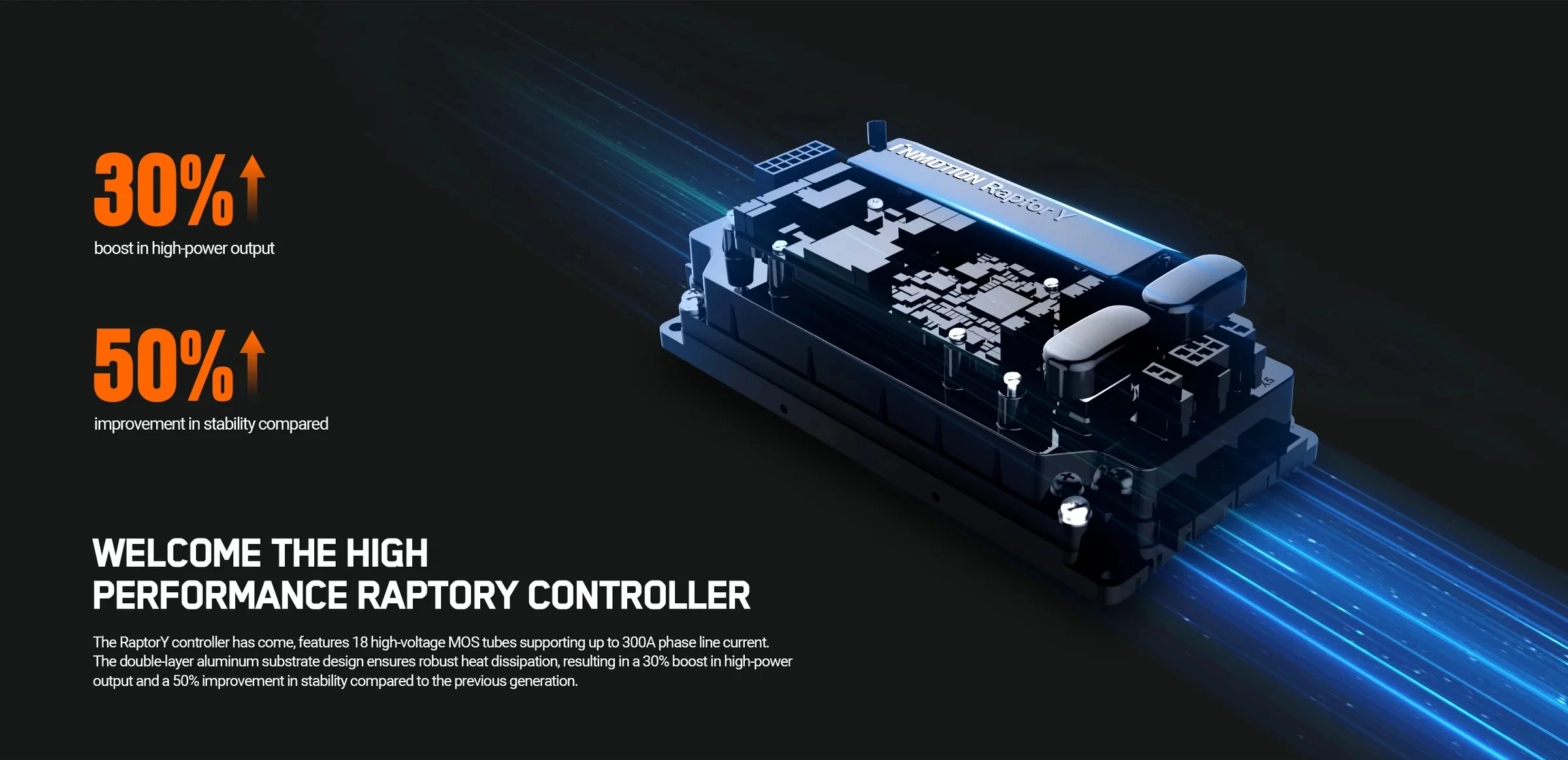 The RaptorY controller has come, features 18 high-voltage MOS tubes supporting up to 300A phase line current.
