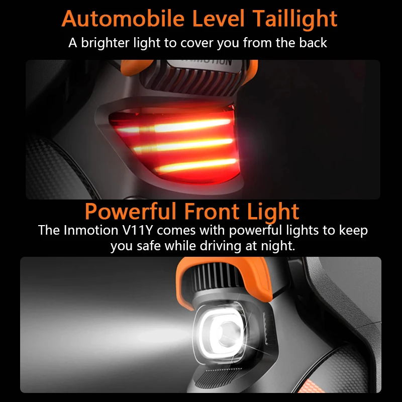 The Inmotion V11Y is equipped with a powerful headlight that willhave you seen by everyone on the road and even show you the way.