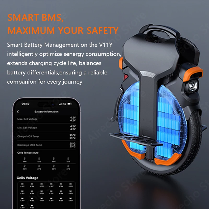 Smart Battery Management on the V11Y iellient optimizes energy consumption, extends charging cycle life,balances battery differentials, ensuring a reliable companion for every joumey.