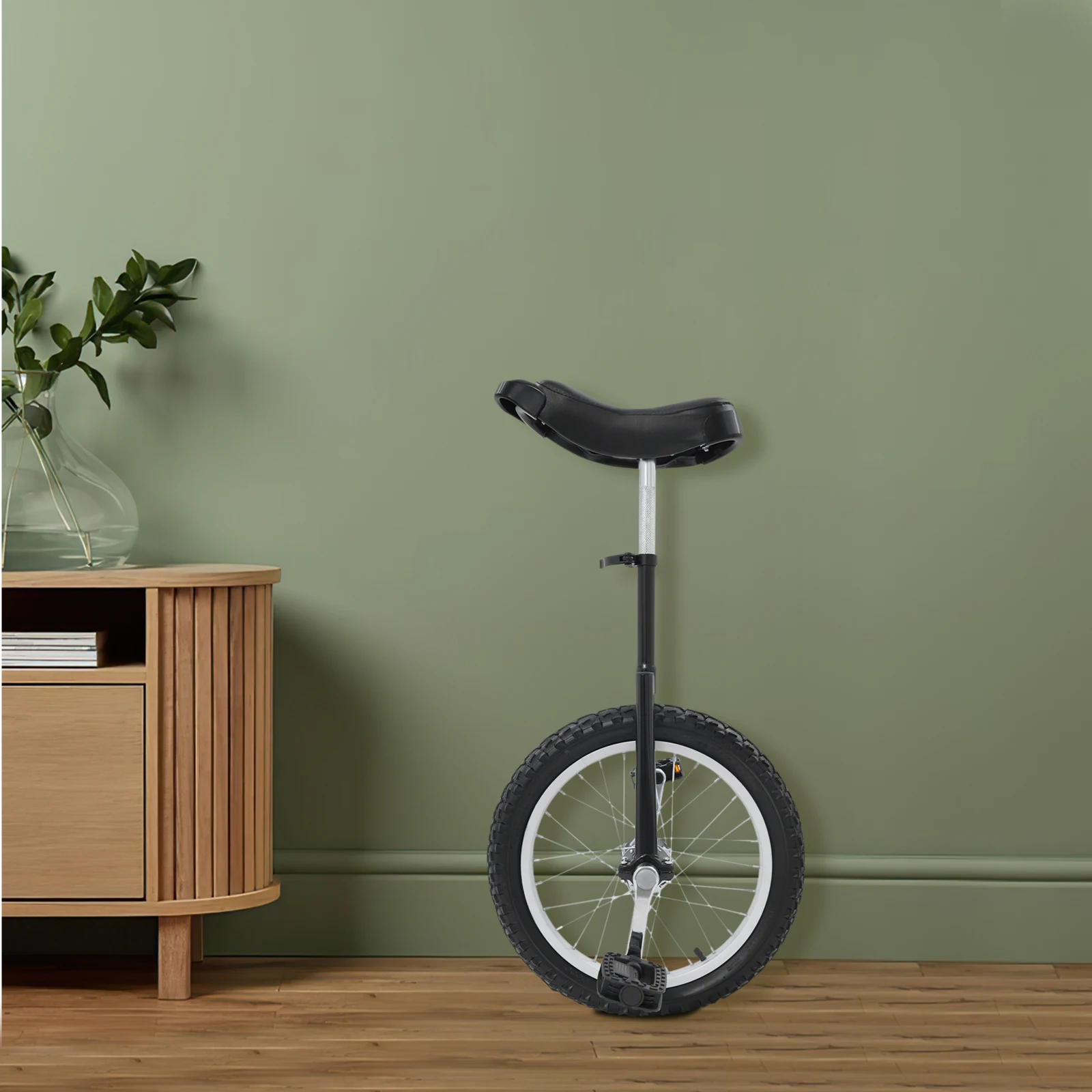 3.Please note that your legs should be almost straight when you sit on the unicycle and place one foot on the lowest position of the pedals. Please insert the frame to the appropriate depth for your height and then tighten it to ensure a safe ride.
