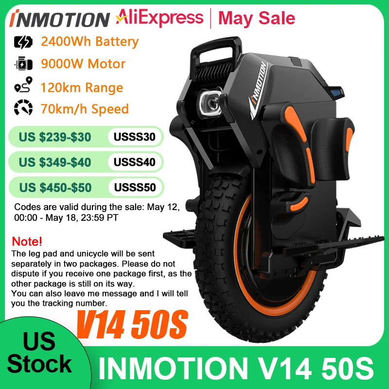 Original INMOTION Adventure V14 Electric Unicycle 70km/h Speed 134V 2400Wh 50S Motor C40 9000W High Torque EUC Unicycle Wheel
